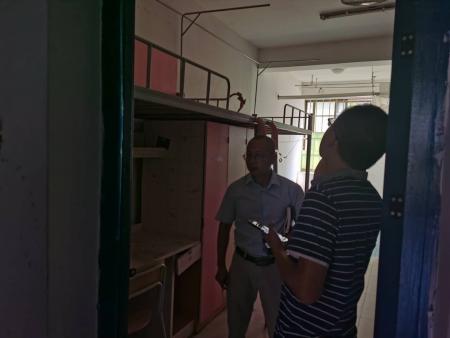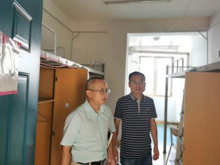陶书记一行检查了住宿楼的整体环境及卫生设备等情况。住宿楼整体干净明亮,卫生环境良好。每到一间学生宿舍,陶书记都会指出其存在的主要问题,对相关设施的维修建设提出了具体的说明与指导意见,要求将寝室管理进一步细化、将住宿准备工作落实到方方面面,为新生带来更好的入住体验。