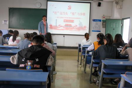 4月21日下午,统计学院在第一教学楼1308教室开展“挑战杯”红色专项进支部活动。本次活动由在比赛中获得优异成绩的给你一朵小“红”花调研团队作成果分享,统计193班团支部全体成员积极参与。