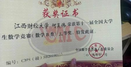 【个人简介】何昊伟,男,2017级经济统计学(拔尖人才实验班)6班本科生。前三年加权成绩89.6,专业排名9/54。曾担任统计学院足球队副队长,在大学期间荣获“学习标兵”称号,全国大学生英语竞赛省三等奖,全国大学生数学竞赛(数学类)省三等奖,正大杯市场调查大赛全国三等奖,华创杯市场调查大赛全省一等奖等荣誉。现以初试399分的成绩被中国科学技术大学拟录取,攻读统计学(数理统计方向)学术学位研究生。