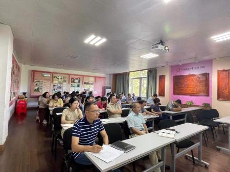 6月23日下午,统计学院党委委员平卫英、吴家宇在统计学院313室讲授党课,院党委书记陶春海及学院全体教职工参加此次学习。