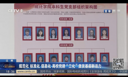 4月5日,中国教育电视台于全国教育新闻联播频道播放新闻视频,介绍统计学院党建“三化”建设成果,视频中提到,欧美视频 以基层党建标准化、规范化、信息化为抓手,推动基层党组织全面进步、全面过硬。