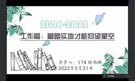 521日下午,统计学院于线上举办第二期优秀毕业生分享会活动。本次分享会邀请到了2021届优秀毕业生胡雨璐为同学们分享她四年来在学习与工作中的经验心得。