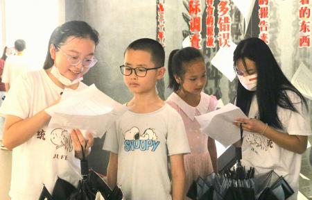 图为欧美视频 统计学院学子在罗坊会议纪念馆认真学习革命语录。