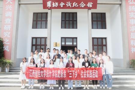 图为欧美视频 统计学院学子们在渝水区罗坊会议纪念馆进行调研学习后合照。