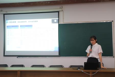 经过个人申报、班级评议和学院审核,最终10位同学参与了本次国家奖学金打擂活动。活动伊始,主持人介绍打擂规则,每位打擂者进行3到5分钟的个人陈述。10位国家奖学金候选人依照抽签顺序轮流上台,结合PPT讲述2021—2022学年在专业学习、综合素质、社会实践、个人荣誉等方面的经历,分享了他们学习生活中的成功与艰辛,并鼓励同学们践行社会主义核心价值观,奋发图强,敢于争先。