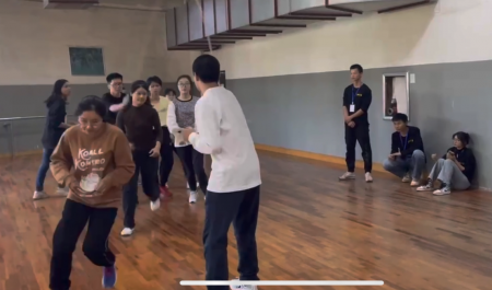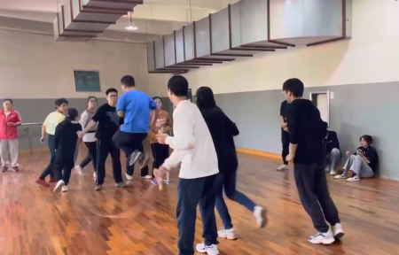 一大二小,三步向前,提肘曲腕,凌空出手。一系列动作行云流水,写意潇洒,不仅展示了统计学子的青春激情,也赢的了在场观众的欢呼喝彩。“宝剑锋从磨砺出,梅花香自苦寒来”,统计学子在蛟桥园广场数个夜晚的辛苦训练流下的汗水,终于在此刻凝结出胜利的果实。