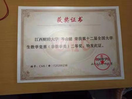 【人物简介】岑山健,男,2017级数理统计专业5班本科生。学习成绩优异,荣获三好学生奖学金,积极参加各类竞赛并先后获得二等、三等奖项若干,并具有丰富的项目经验。现以364分的初试成绩被中南财经政法大学拟录取,攻读统计学(数理统计方向)学术学位。