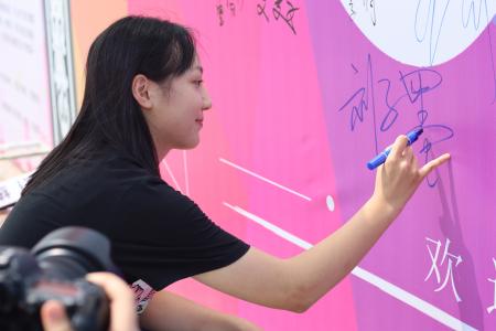 (新生在迎新墙上签字留念)