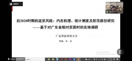 12月18日上午,应统计学院邀请,广东外语外贸大学周迪教授为统计学院师生带来一场题为“后2020时期的返贫风险:内在机理、统计测度及防范路径研究——基于对广东省相对贫困村的实地调研”的线上讲座。本次讲座由统计学院副院长郭露主持,统计学院部分教师和研究生参加。
